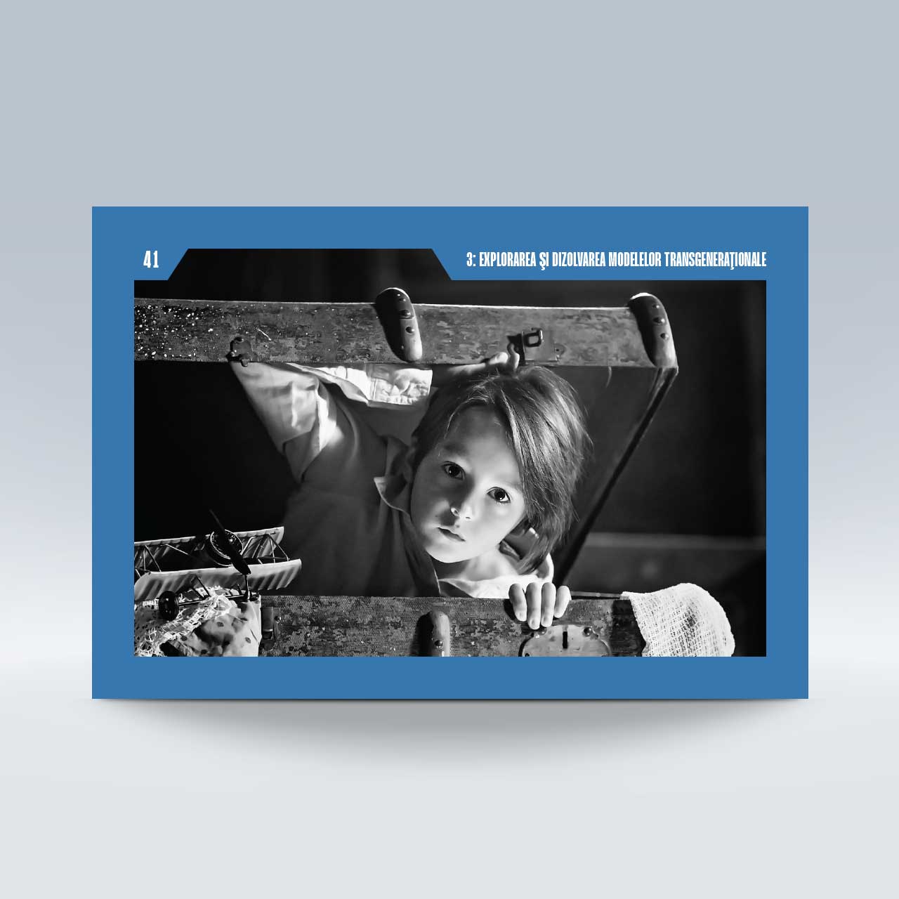 Acest set introductiv conține 7 carduri de lucru aplicabile, selectate aleatoriu din setul original TTT – Terapia traumei transgeneraționale, precum și un manual cu repere teoretice fundamentate științific. Cardurile sunt dezvoltate de Sabine Lück, psihoterapeută germană și autoarea metodei Generation Code®, în baza unei experiențe clinice de peste 30 de ani și a cercetării interdisciplinare din domeniile epigeneticii, psihogenealogiei și psihotraumatologiei.